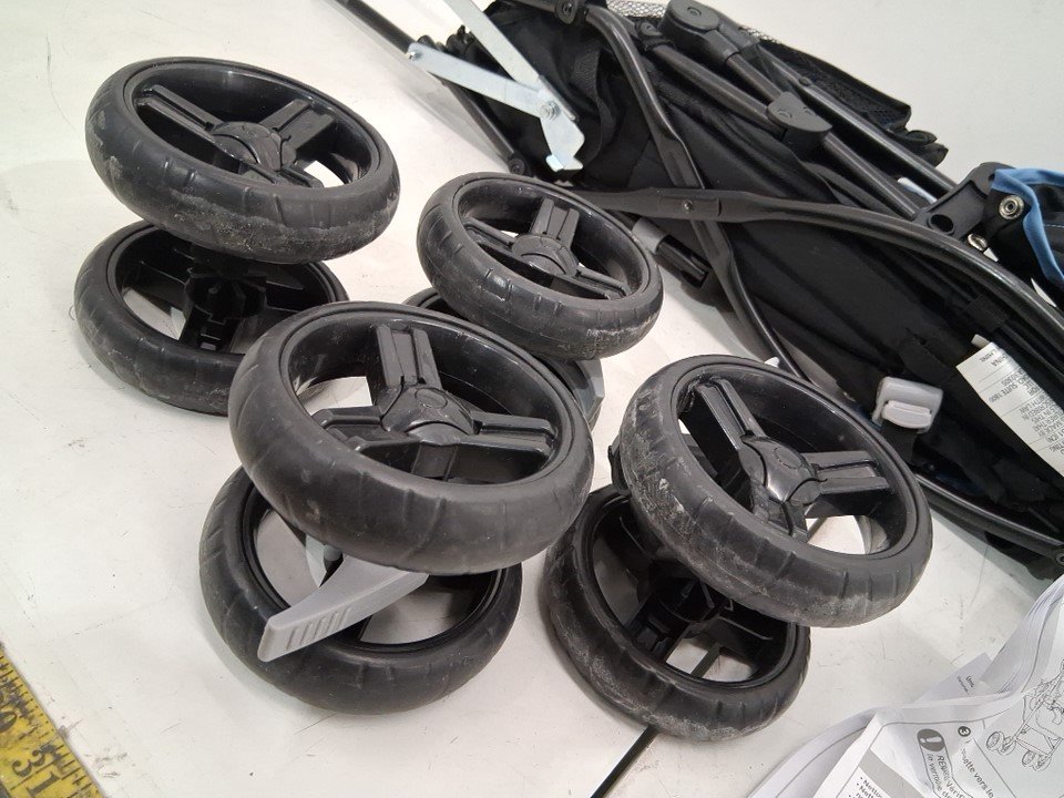 item has some minor marks from previous use, also the wheels have dust