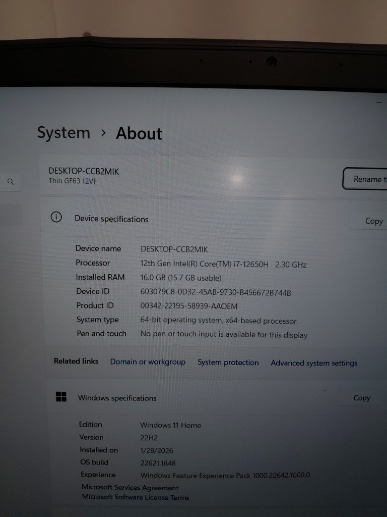MSI Thin GF63 15.6" FHD 144Hz Gaming Laptop, Intel® Core™ i7-12650H, 1920x1080 16:9, RTX 4060, 16GB DDR4, 512GB NVMe SSD, Windows 11 Home (MODEL : GF63 12VF)