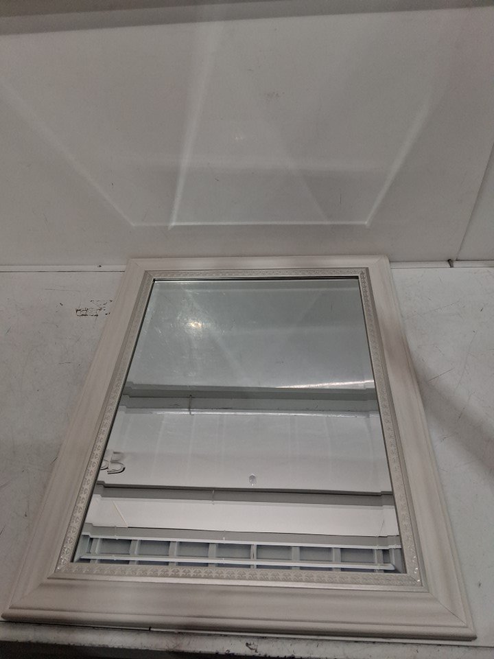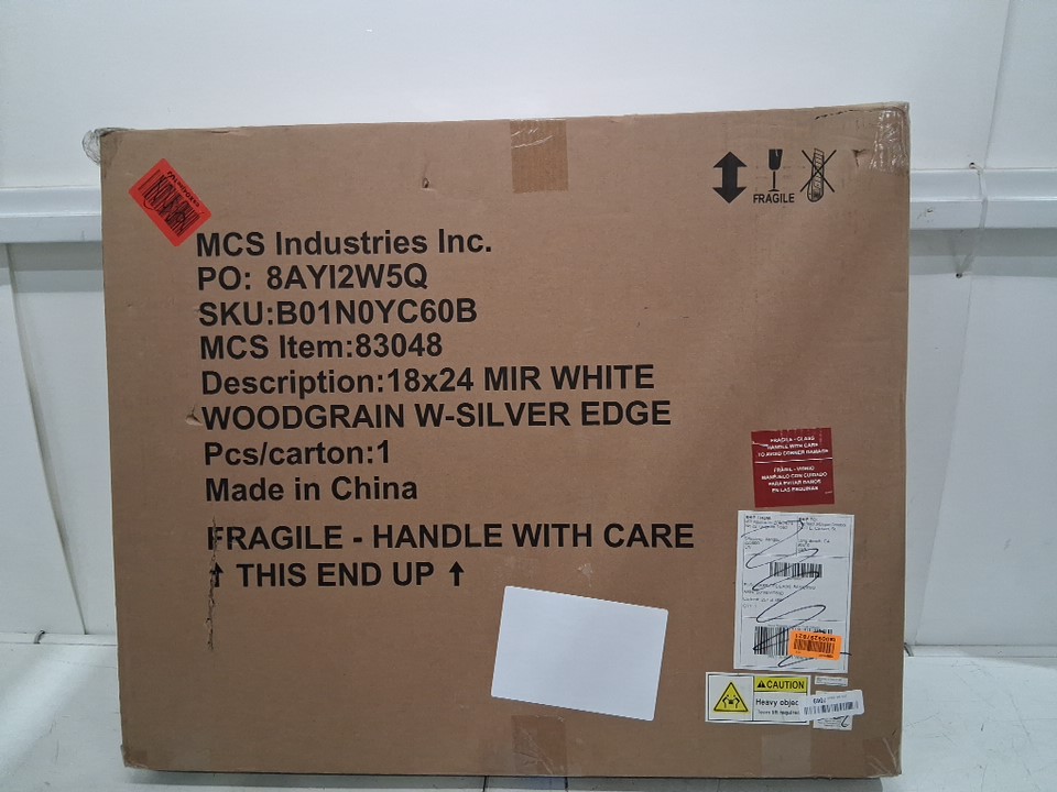 woodgrain silver edge Hanging Mirror - 18" x 24" - White (Model: 83048)