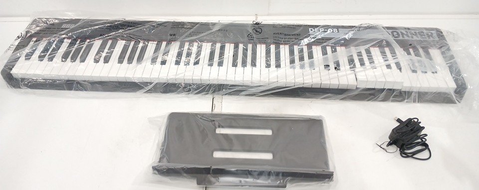 This item is missing its power cord and so could not be tested. Some of its keys are stuck in the up position.