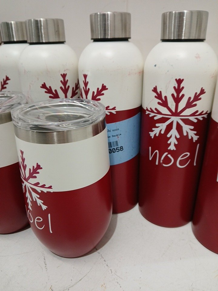 Every bottle has a blue sticker on it and has some scuff marks from shipping loosely. See photos.
