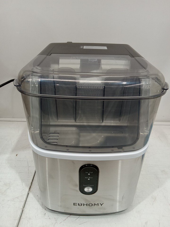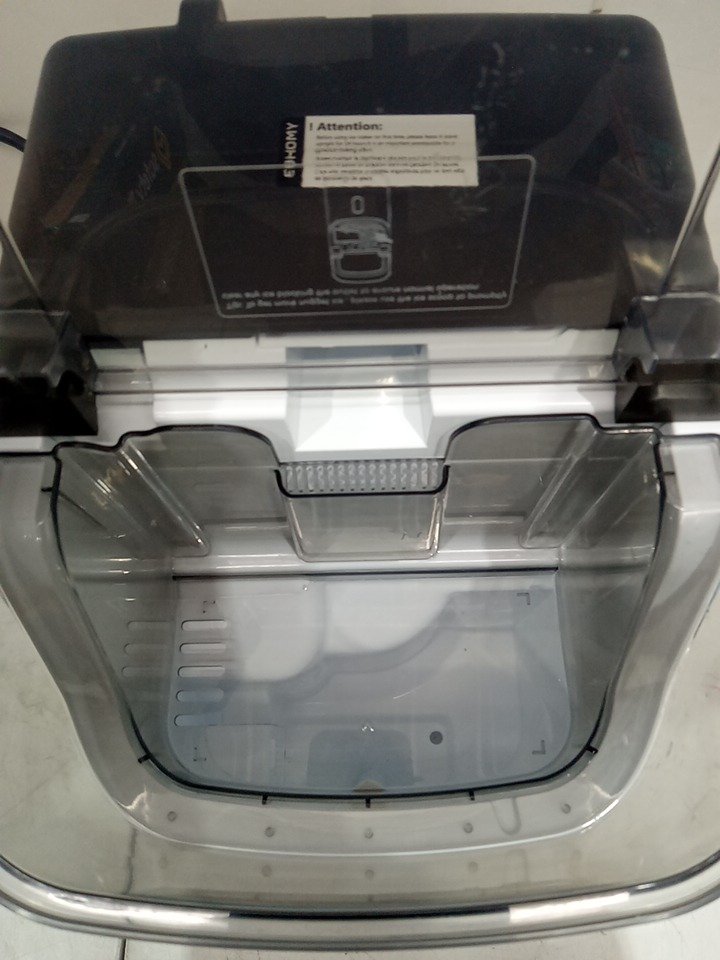 There are water stains on the ice maker and scratch marks around the product due to previous use. Tested for power and motor function only. (Please see photos)