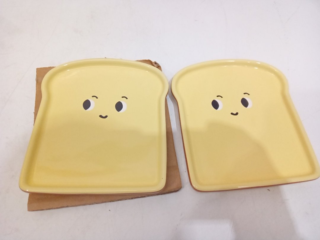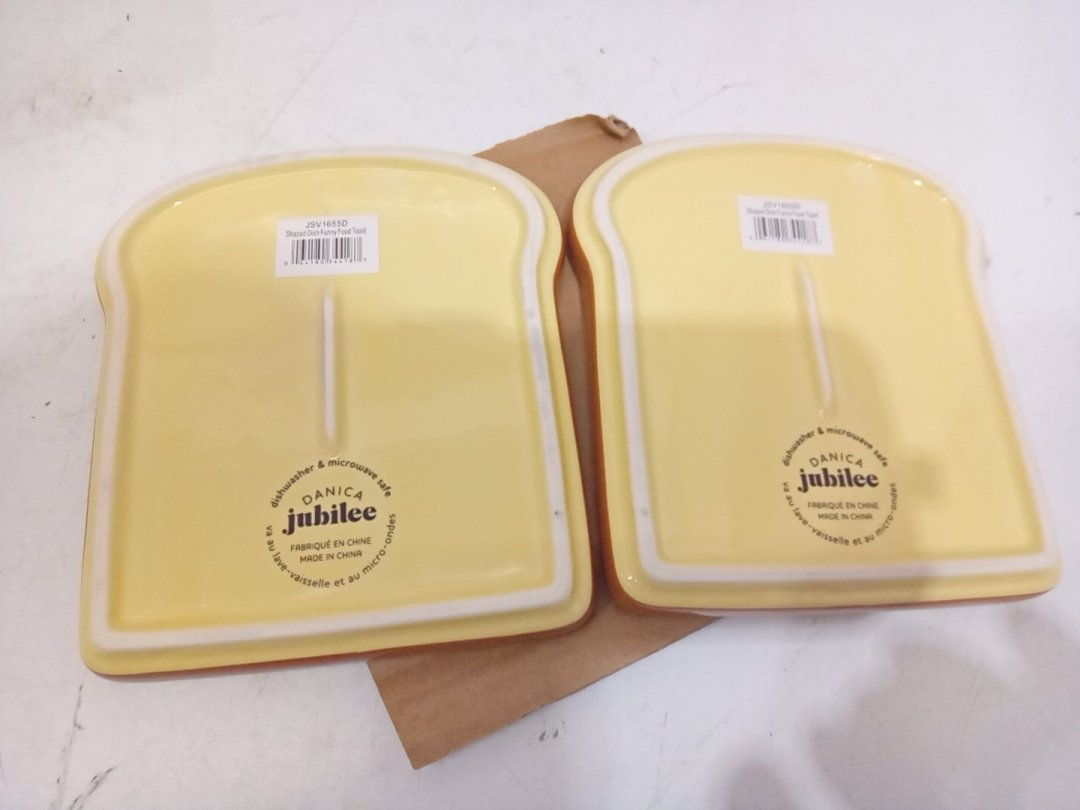 2 Danica Toast Shaped Dishes - 5.4" x 5.9" - Yellow/Brown (Model: JSV1655D)