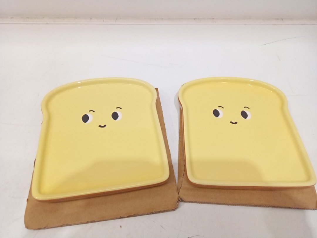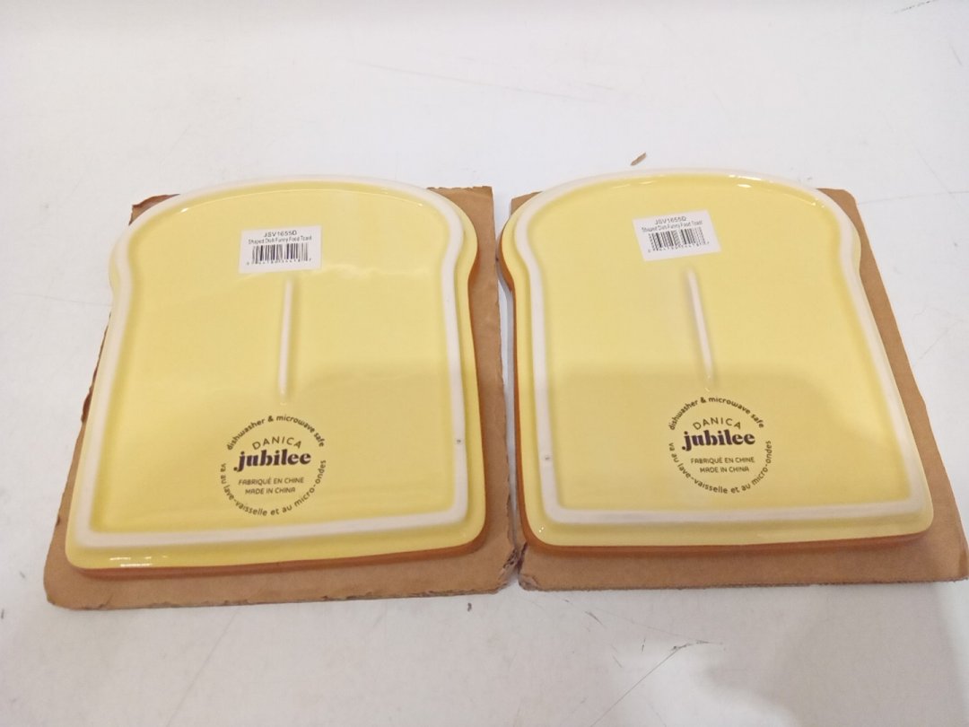 2 Danica Toast Shaped Dishes - 5.4" x 5.9" - Yellow/Brown (Model: JSV1655D)