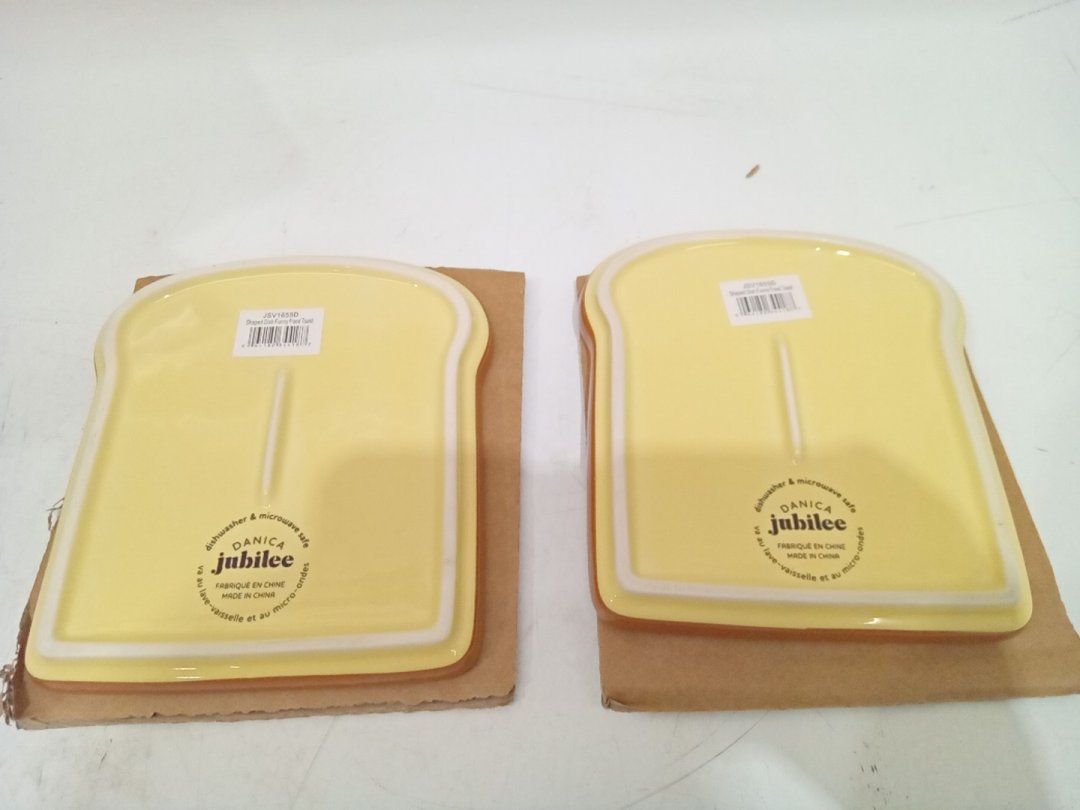 2 Danica Toast Shaped Dishes - 5.4" x 5.9" - Yellow/Brown (Model: JSV1655D)