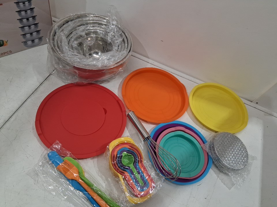 25PC Mixing Bowls with Lids and cooking utensils - stainless steel - rainbow