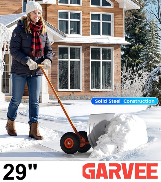 garvee heavy duty metal snow shovel with wheels - 29" - black/blue (model: PPG_346AR4KQ)
