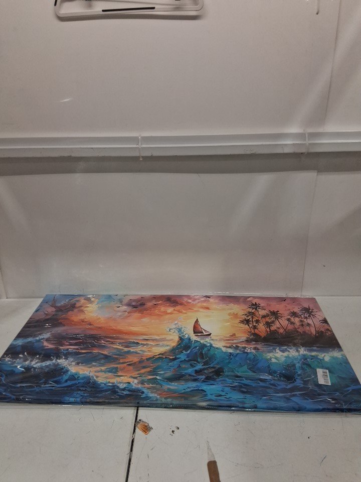 piy paintings sailboat coconut grove and blues waves sunset oil canvas painting wall art - 20" x 40" - variety of colors