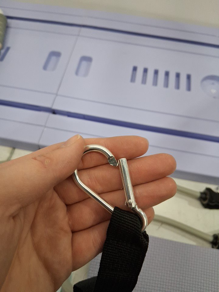Product has some scratches and one of the carabiners doesn't lock (See photos)
