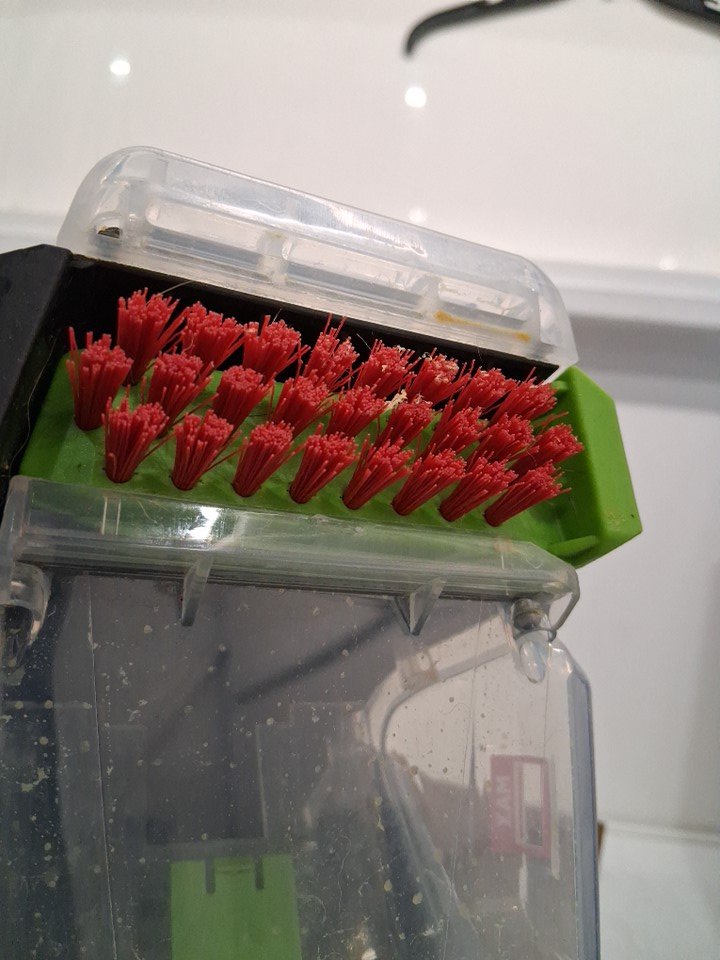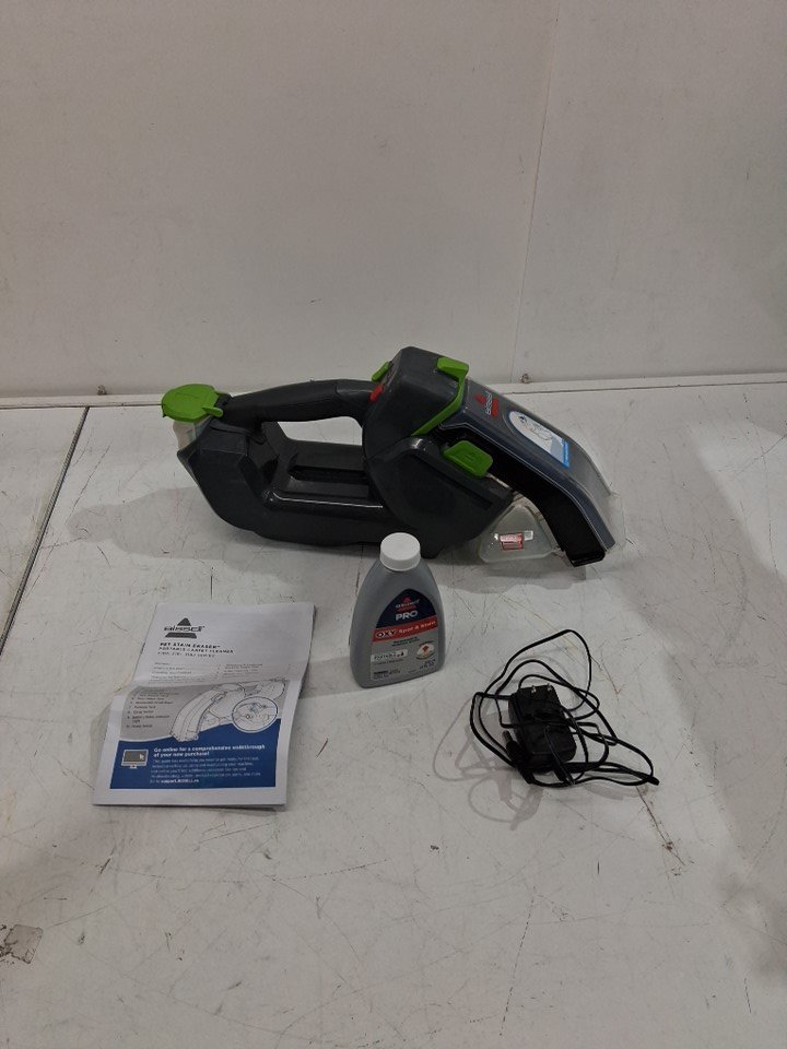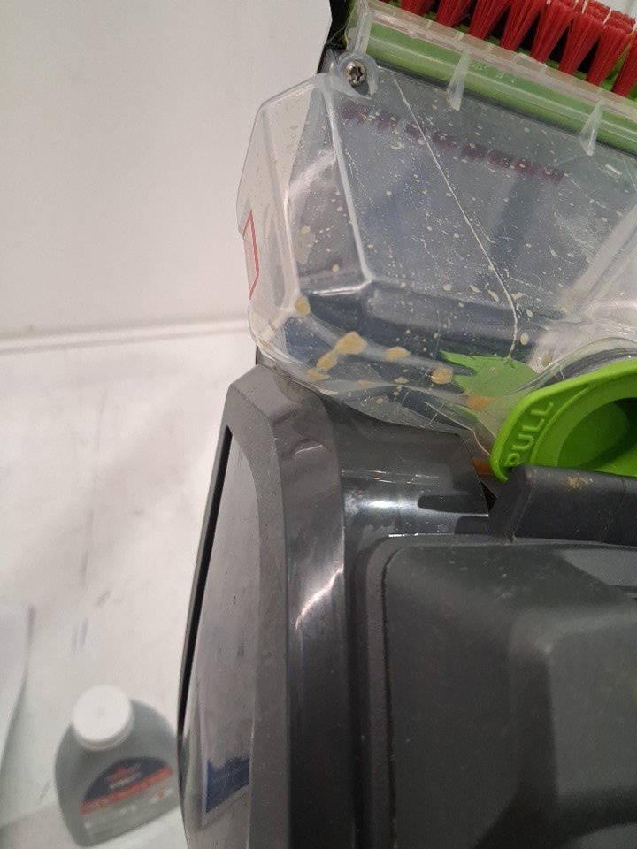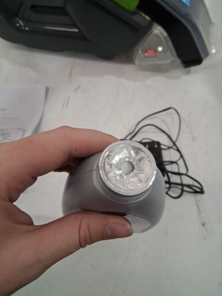Product has debris and grime throughout, and the cleaner bottle has been opened (See photos) Tested for power