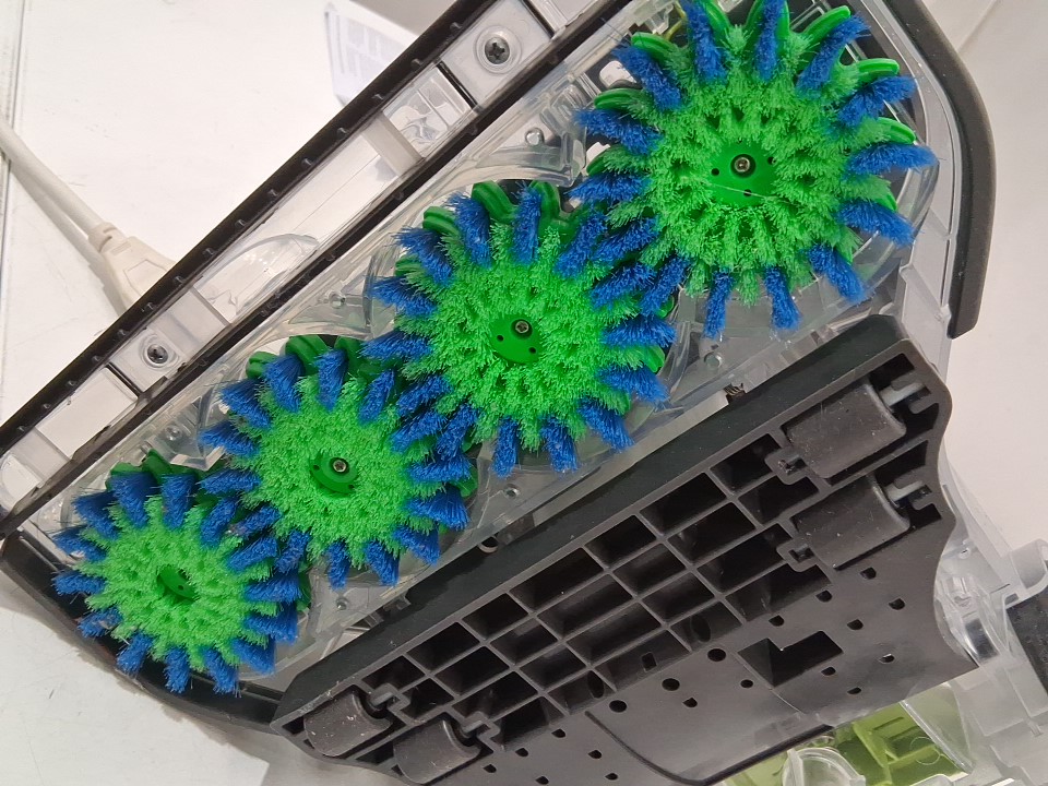 **Tested for power and suction.** Item has residual water in the reservoirs, minor debris on the main brushes from previous gentle use, see photos.