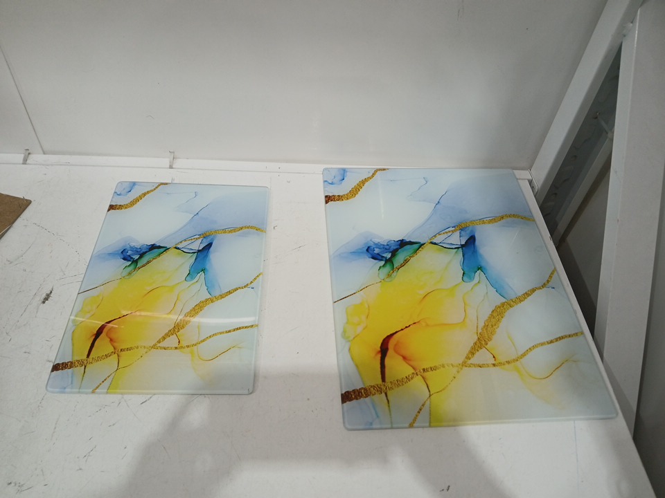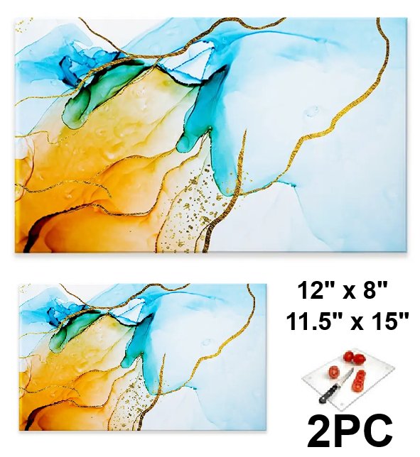 2pc abstract printed glass cutting board set - 11.5" x 15" x 12" x 8" - blue gold white