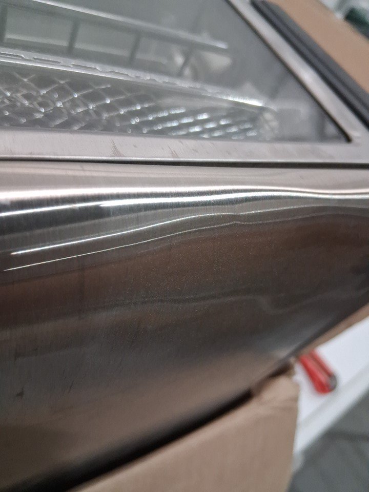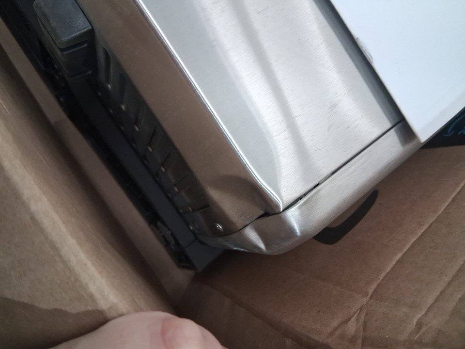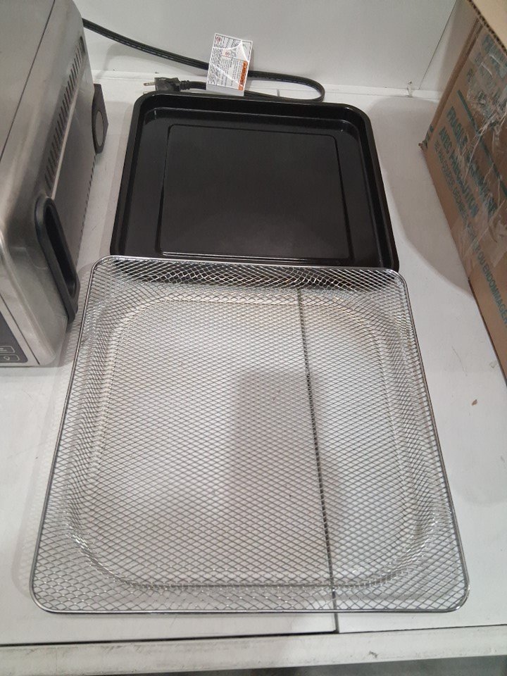 there is multiple dent on the item. 2 on the bottom edge and one near the front. dust like debris on the entirety of the item. cooking burns on the inside. tested for power.
