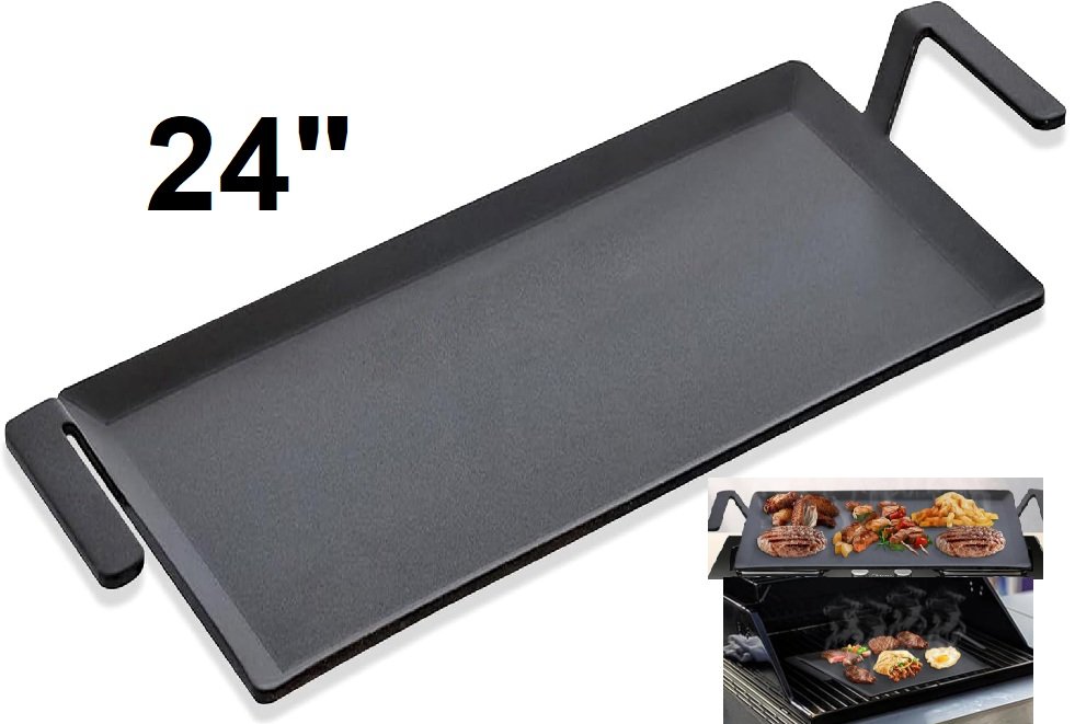 keesha Carbon Steel Griddle for Gas Grill, Double Burner stove - 24" - black