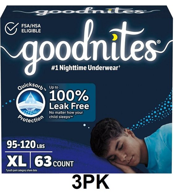 3PK BOYS GOODNITES NIGHTTIME BEDWETTING UNDERWEAR - XL - 63 in total (FITS SIZE 14-16)