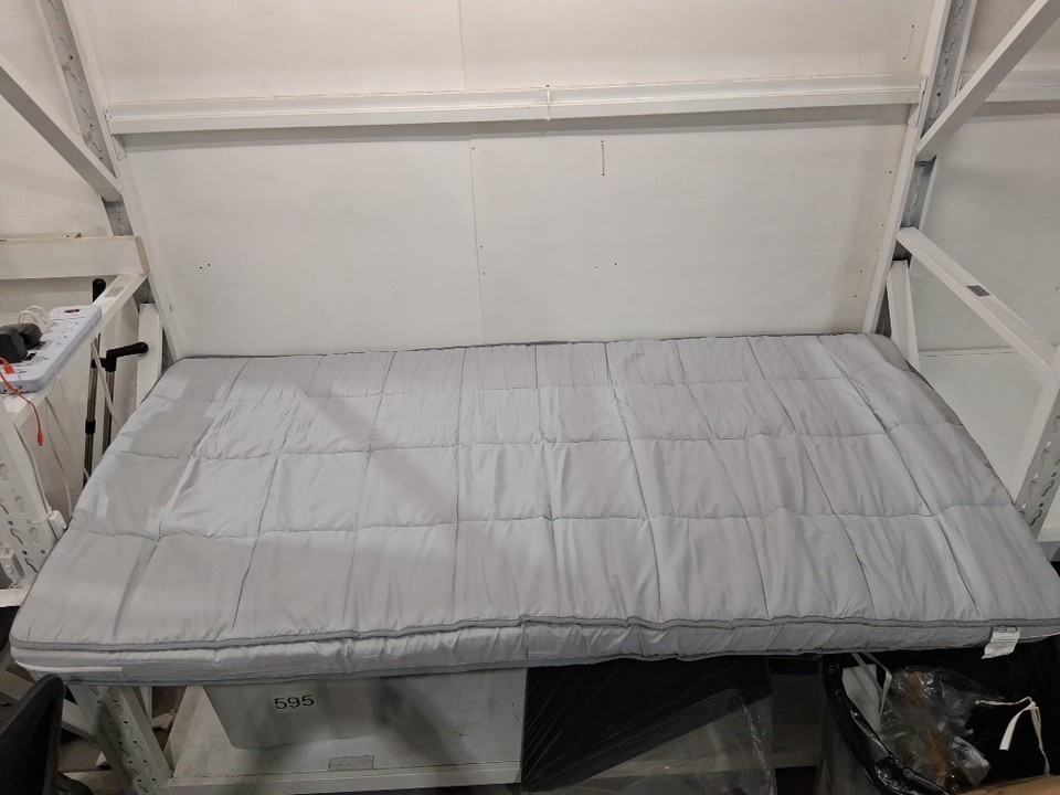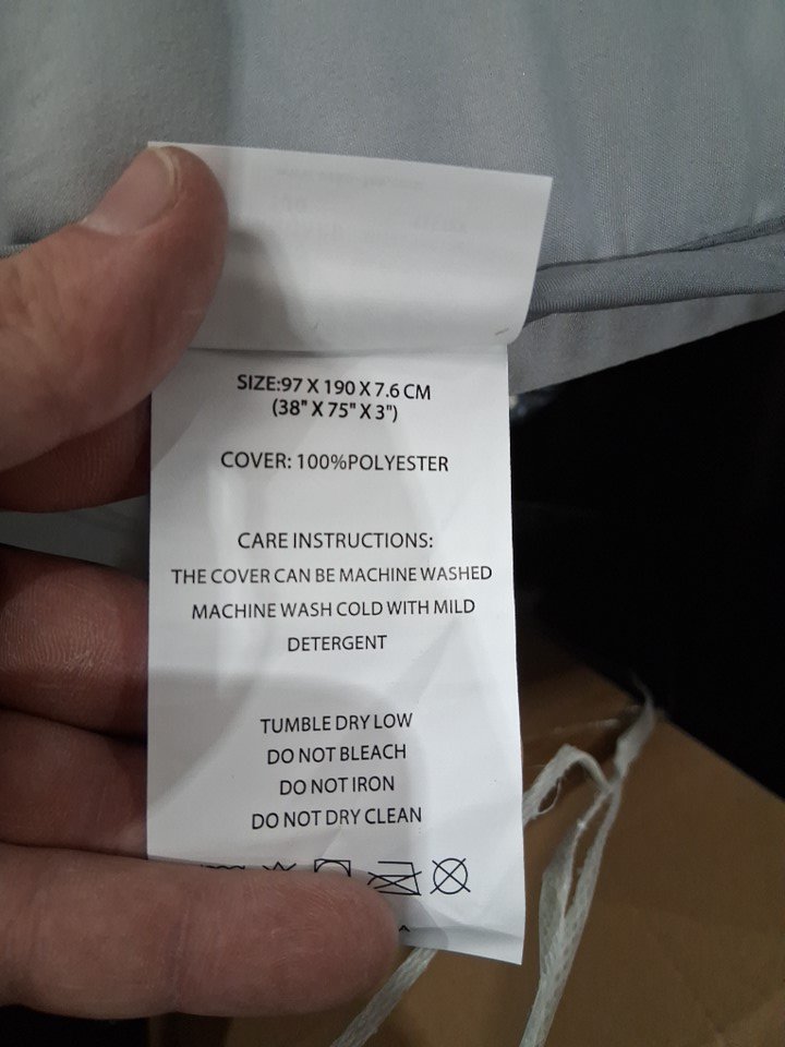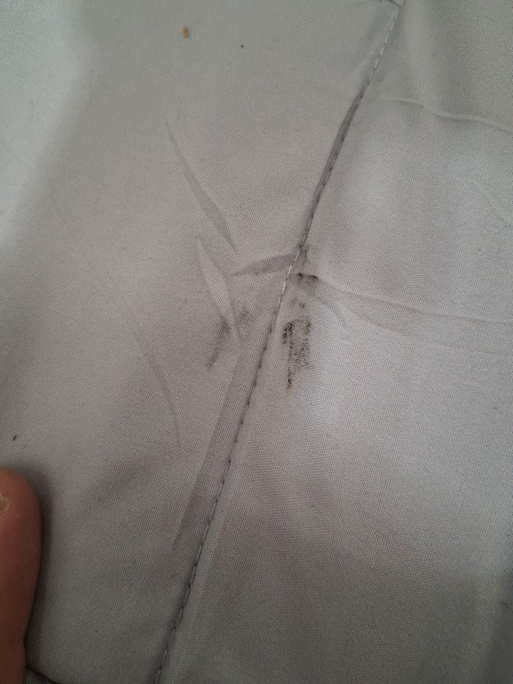 There is one small dark spot on one side of the mattress, likely due to shipping - see photos. Outside of this, the mattress appears to be in new condition with no clear signs of use, damage, or any other issues. Please be aware that there may be some additional dust and light debris on the mattress during pickup due to storage and handling in our facility.