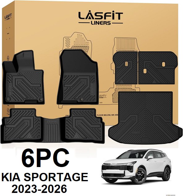 6PC LASFIT 1st & 2nd Row Full Set all weather Floor Mats and Cargo Liner - for select kia sportage 2023-2026v - BLACK - (MODEL: xs-ka18a)