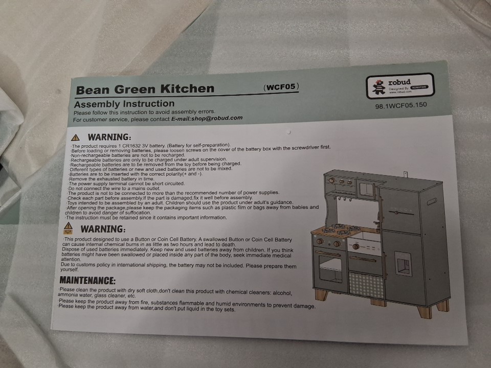 Robud Bean Green Wooden Pretend Play kitchen - Green (model: wcf05)