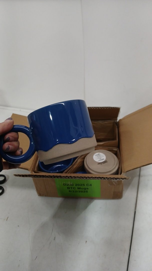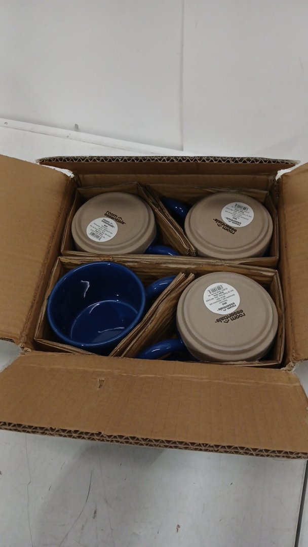 4 ROOM ESSENTIALS CERAMIC STONEWARE MUG - 17OZ - WAVY GLAZE BLUE/TAN