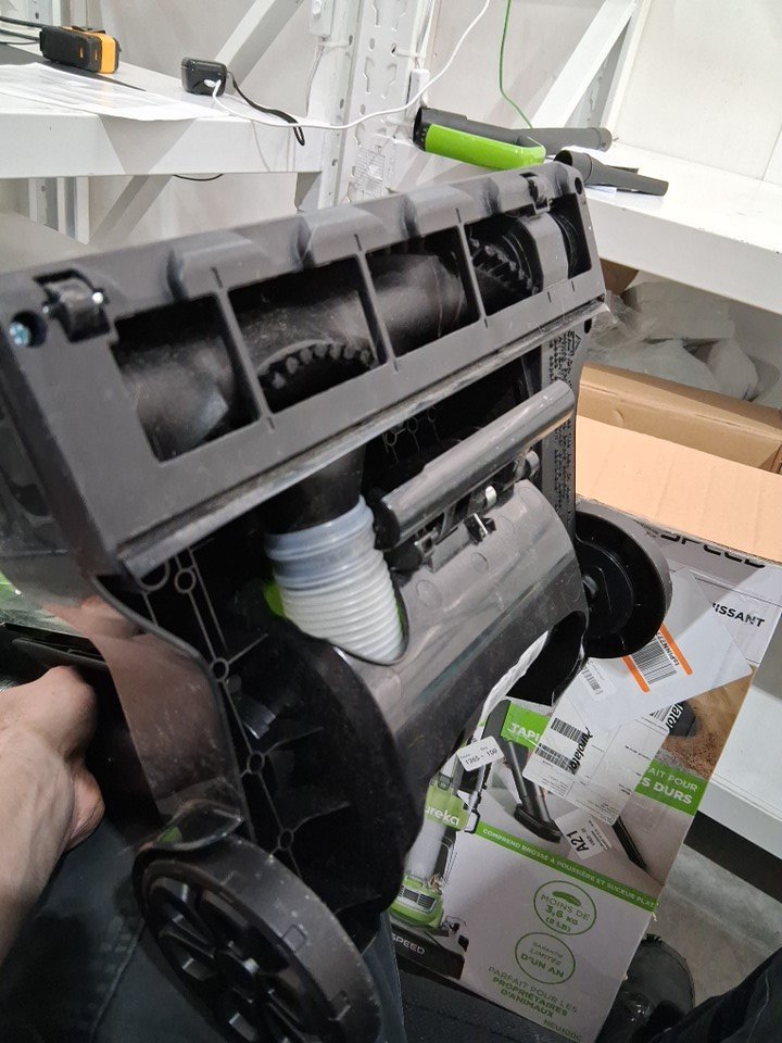 Small marks on vacuum head and lots of cardboard dust, otherwise, seems new and tested for power.
