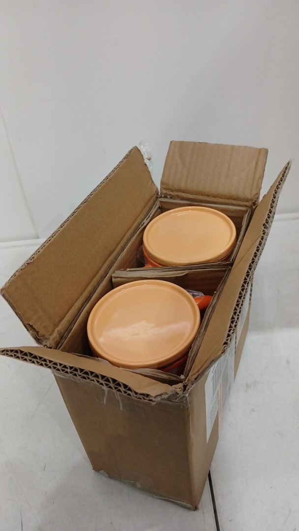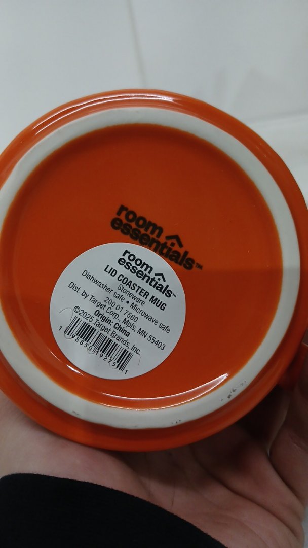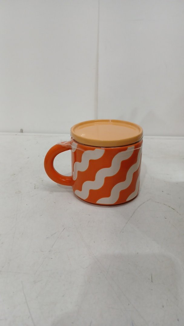 4 (2PC) ROOM ESSENTIALS CERAMIC STONEWARE SQUIGGLY PRINT MUG WITH COASTER LID - 17OZ - ORANGE