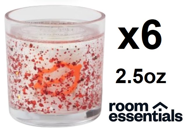 6 ROOM ESSENTIALS SCENTED DECORATIVE CANDLE IN GLASS JAR - 2.5OZ EACH - STRAWBERRY SHORTCAKE SCENTED