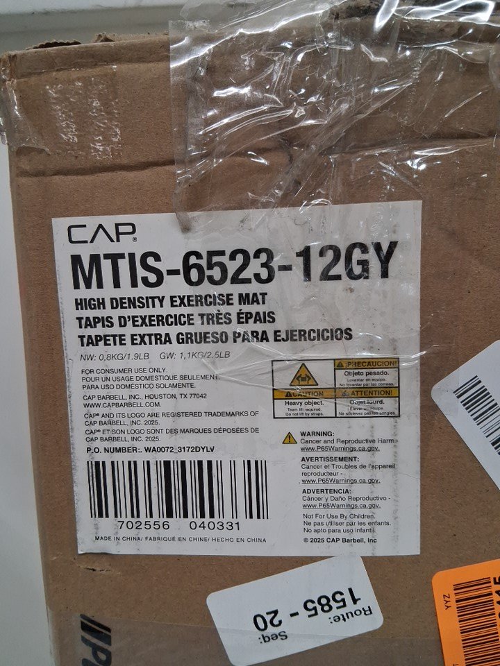 CAP Barbell High Density Exercise Yoga Mat with Strap - 68" x 24"- grey (model: mtis-6523-12gy)