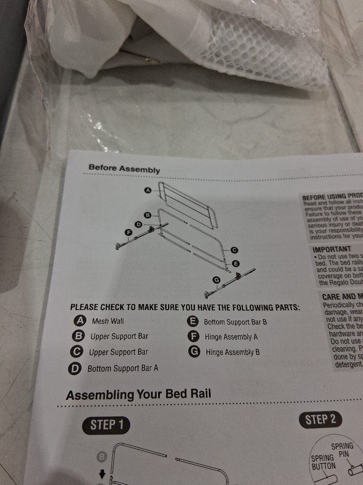 REGALO SWING DOWN MESH BED RAIL GUARD - 43" X 20" - WHITE/GREY (MODEL: 2020DS)