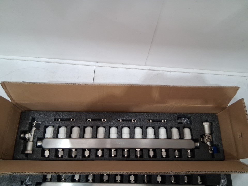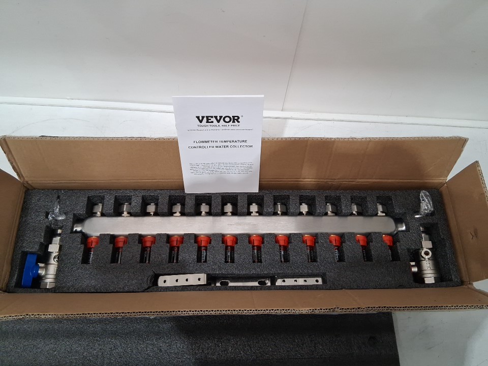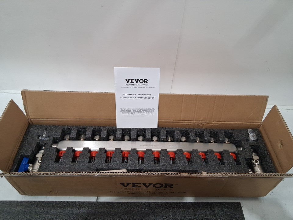 VEVOR Radiant Heat Manifold flowmeter temperature control water collector - 12 Branch, 1/2" - silver (MODEL : 7012-25-12-00-NPT)