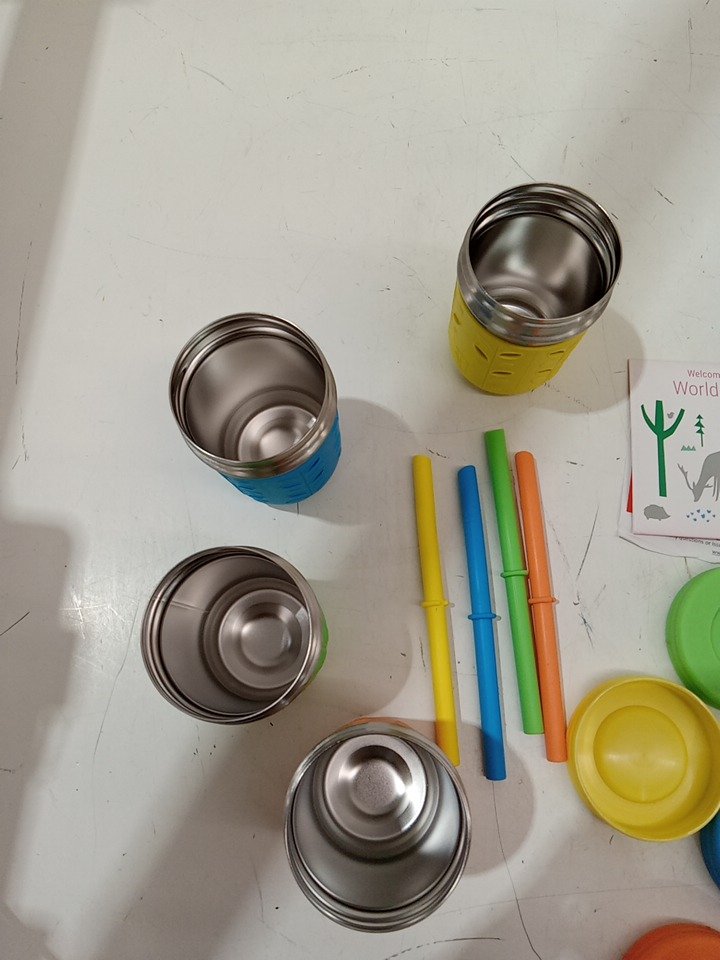 there are some marks on the inside of the lids and the blue tumbler lid is missing from the set