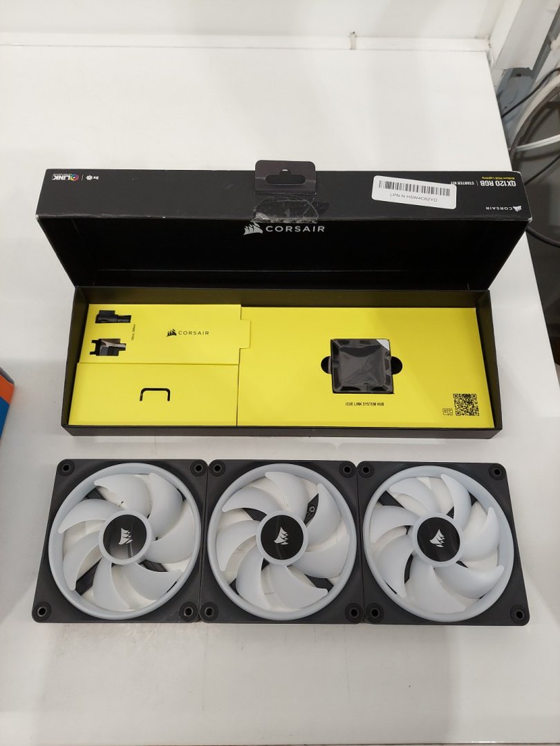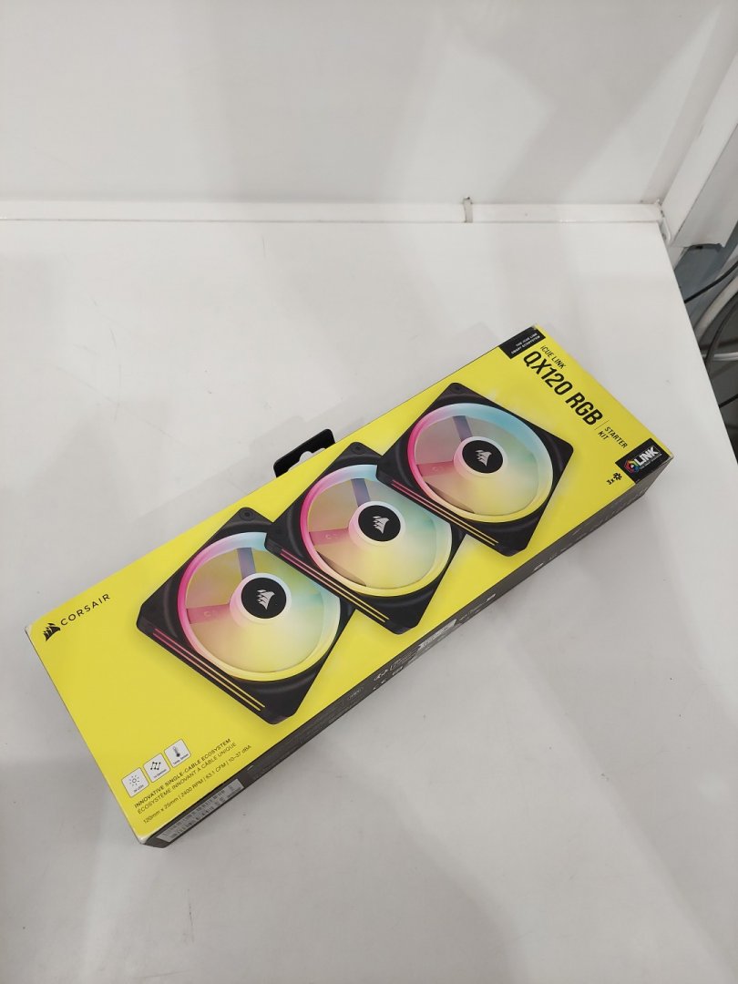 CORSAIR QX Series QX120 RGB 120mm Fans - iCUE Link Ecosystem - Magnetic Dome RGB PWM Fans - 3 Pack Starter Kit with Included System Hub - Black (MODEL : ‎CO-9051002-WW)