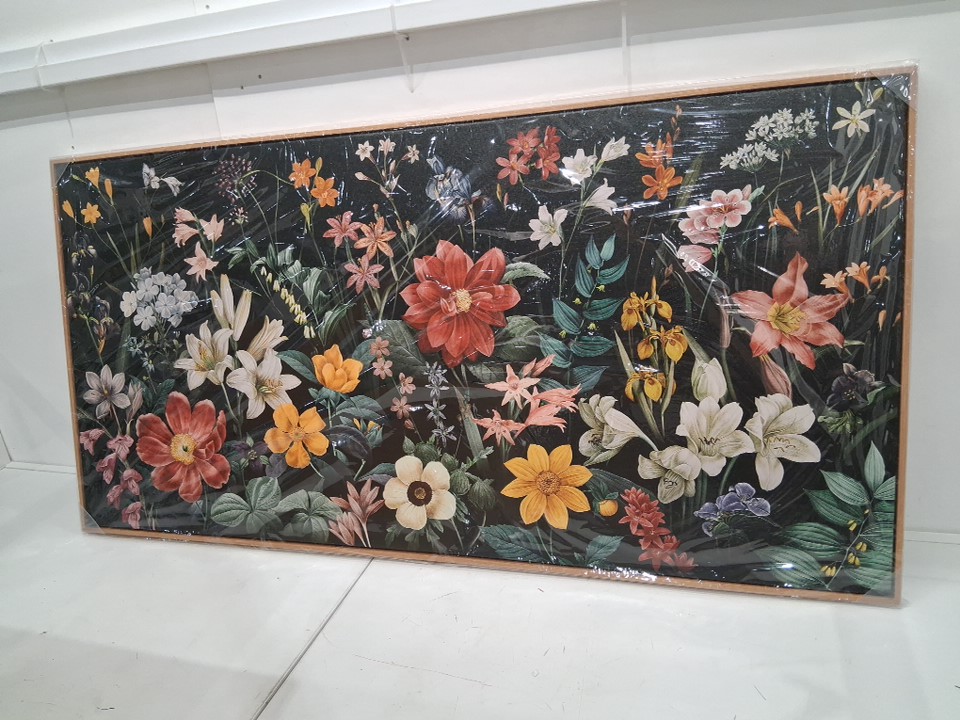 tigeridge Botanical Flowers Bouquet Canvas wall art with natural wood frame - 24" x 48"