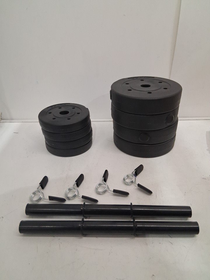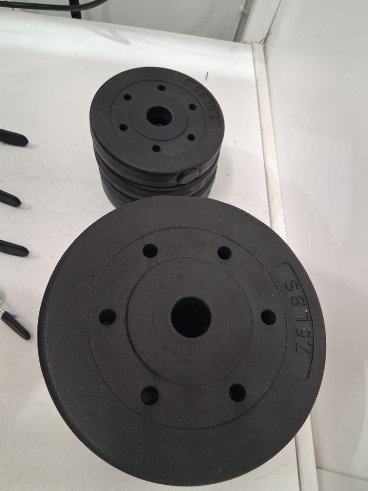 Please note that there are 14pc: (4) 7.5lbs weights (4) 2.5lbs weights (2) Loadable Bars (4) Locks