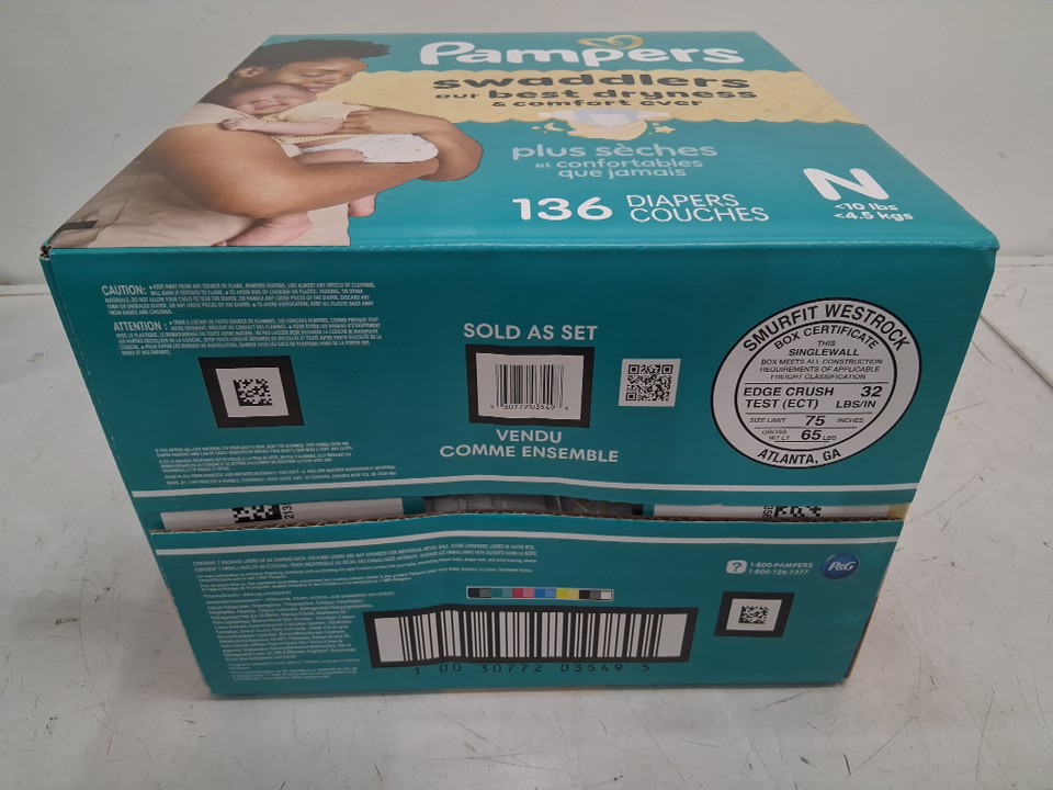 136PK PAMPERS SWADDLERS DIAPERS - NEWBORN SIZE