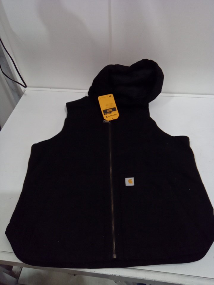 women's carhartt washed duck hooded vest, relaxed fit - large (12-14) - black (style: ov3837-w)