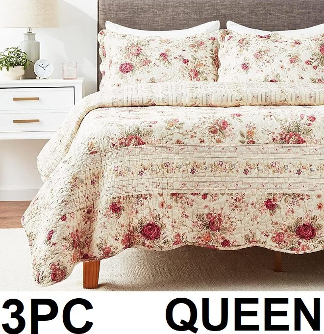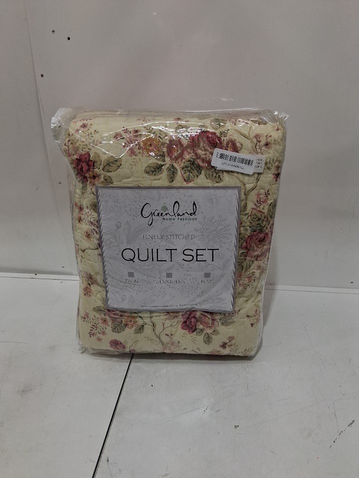 3PC greenland Antique Rose quilt set - queen - 90" x 90" - yellow/red