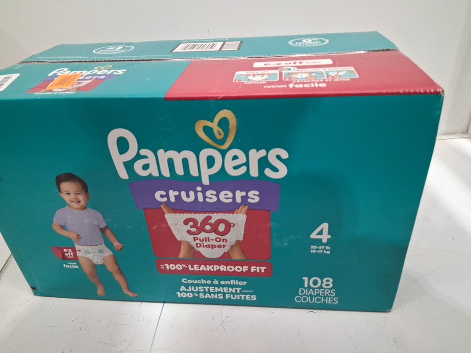 108PK PAMPERS PULL ON CRUISERS 360° FIT GAP-FREE FIT DISPOSABLE BABY DIAPERS - SIZE 4 /22LB- 37lb