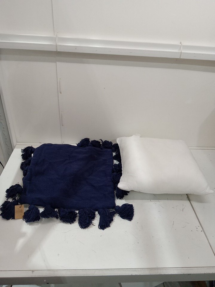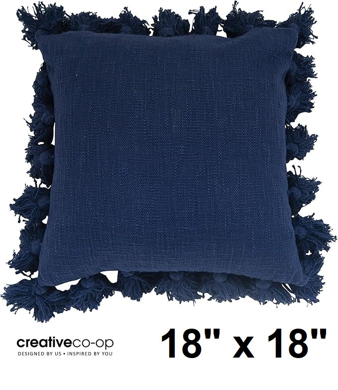 creative co-op square throw pillow with tassels - 18" x 18" - navy blue