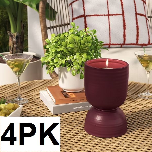 4PK THRESHOLD HOURGLASS POTTERY CANDLE, SINGLE COTTON WICK - 10 OZ - CITRONELLA