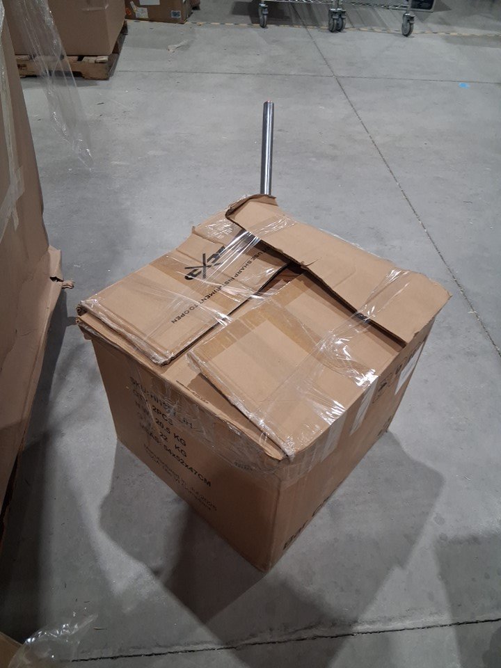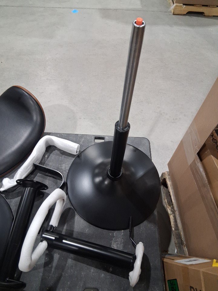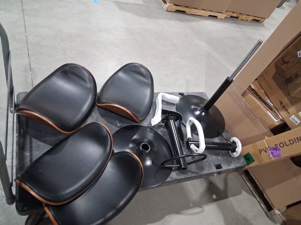 Hardware is loose in box, one chair is partially put together, and one hydraulic pole is missing, can be replaced, some pieces may have small scratches