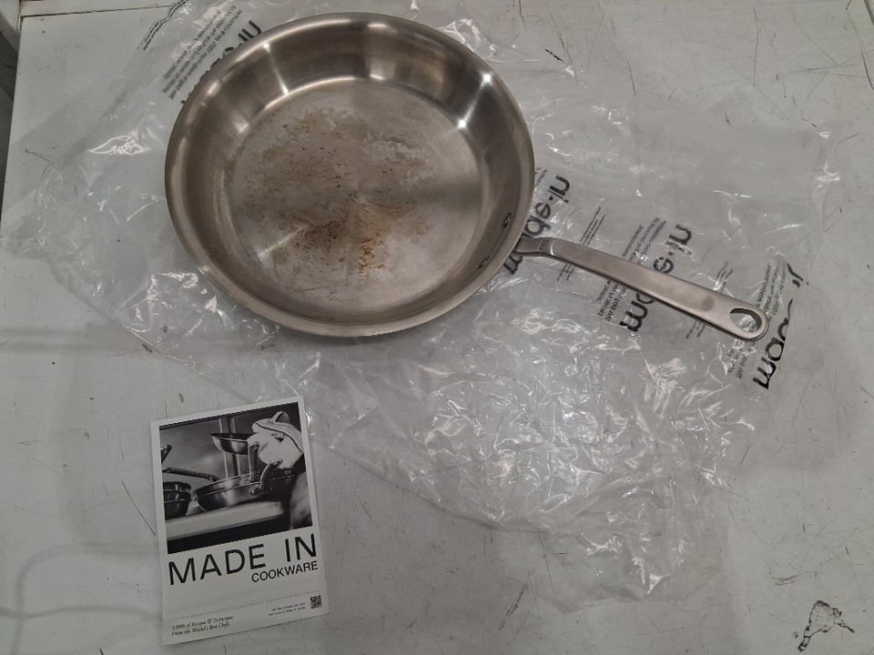 Heat and food stain residue on pan indicates prior short-term use. (See photos)