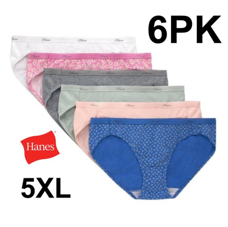 6pk women's hanes breathable cotton tagless high waisted briefs underwear - 5XL - assorted colors