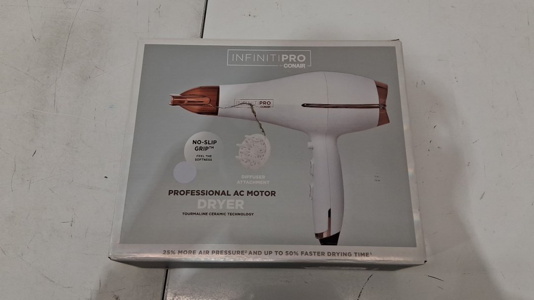 INFINITIPRO BY CONAIR CERAMIC TOURMANLINE SOFT TOUCH HAIR BLOW DRYER WITH DIFFUSER & CONCENTRATOR - 1875W - WHITE (MODEL: 362NC)