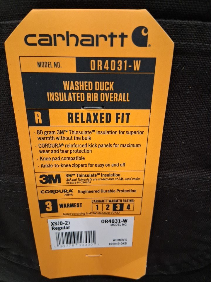 WOMENS CARHARTT RELAXED FIT WASHED DUCK INSULATED BIB OVERALLS - extra small (0-2) regular - dark brown (STYLE: OR4031-W)