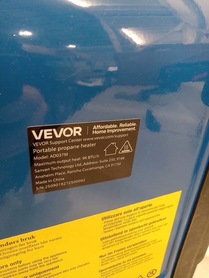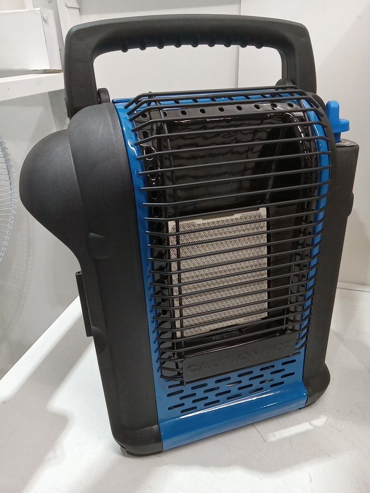 portable indoor/outdoor propane heater with Stepless Temp Settings - 9000btu/hour - 7.5" x 12.6" x 16.1" - black/blue (model: ad037m)