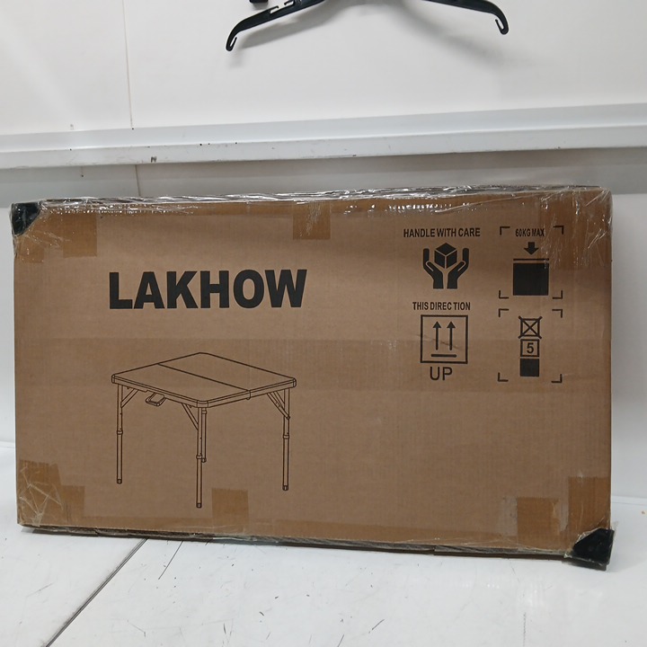 lakhow portable square foldable plastic table with collapsing legs, height adjusting knobs & non-slip foot pads - 34" x 29" - white/grey (model: lakhow-86l)