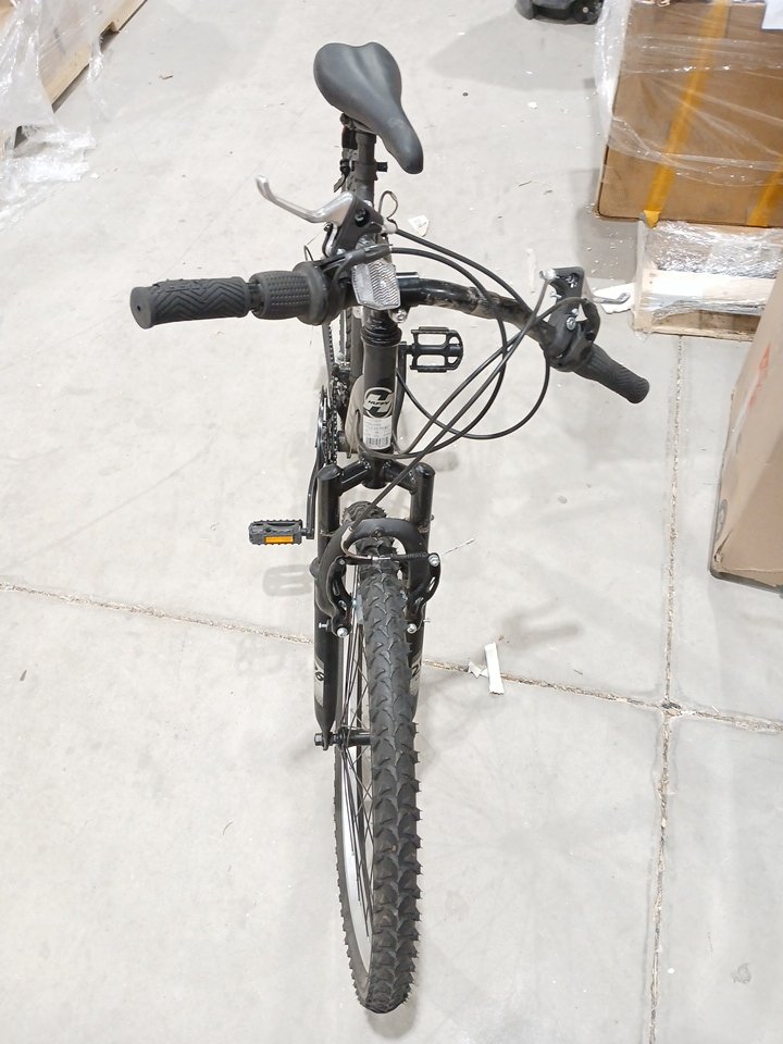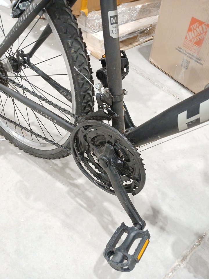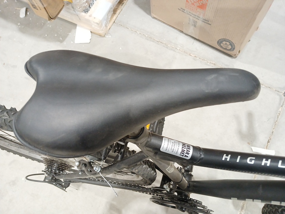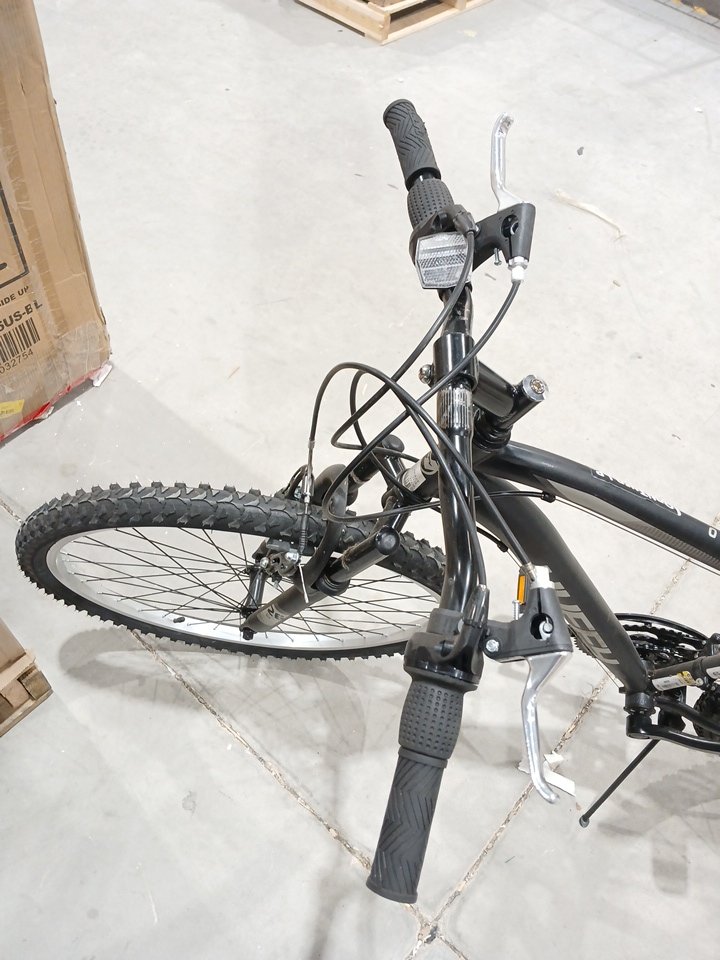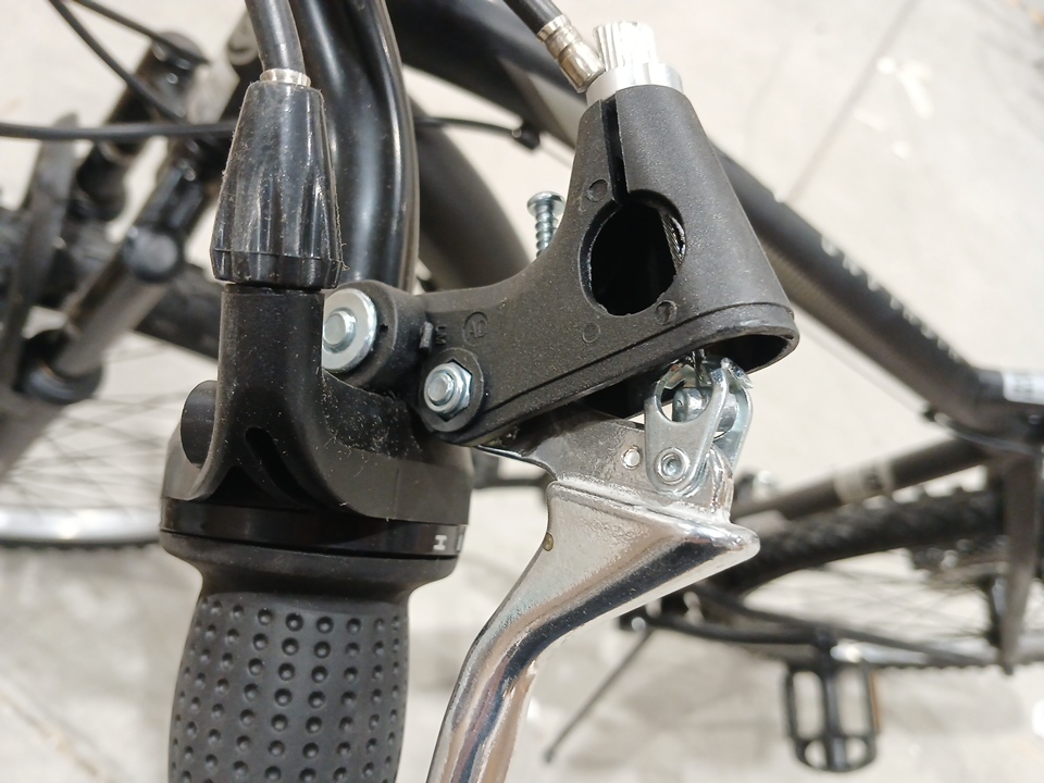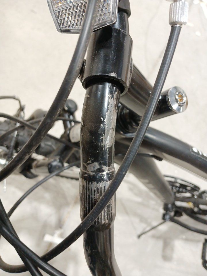 There are a lot of scratches on the handlebars, the handlebars are upside down, and the brake gets stuck in the down position