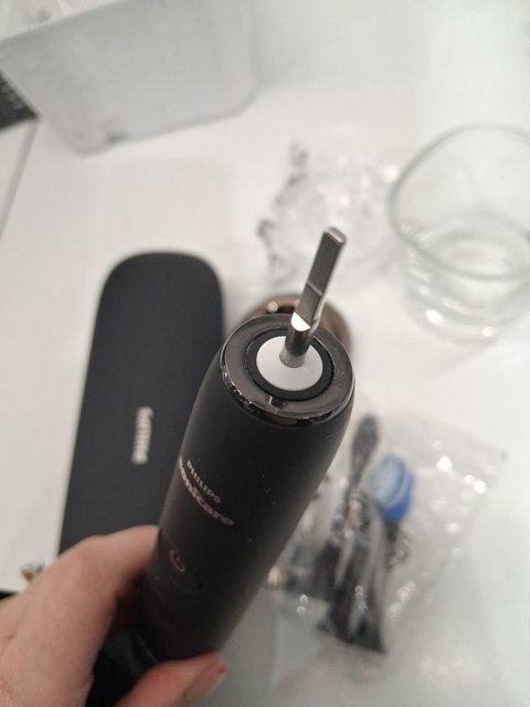 There is a bit of toothpaste residue on the brush handle and one of the included brush heads came opened. We recommend doing a personal clean of this item before use. tested for power.