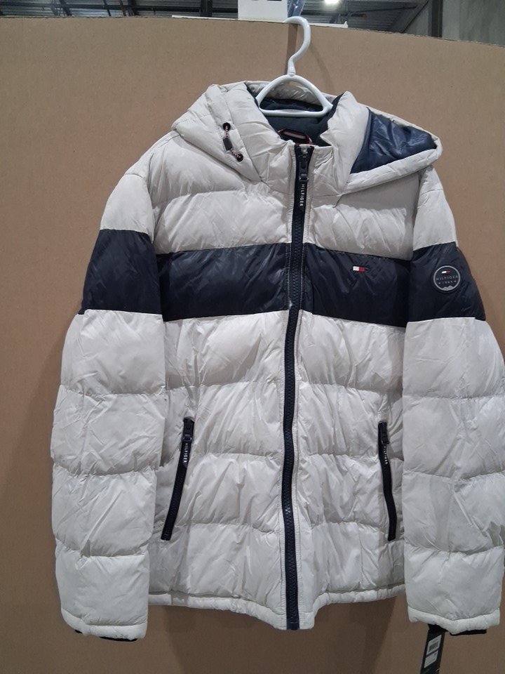 MENS Tommy Hilfiger Hooded Puffer Jacket - xxL- Ice Midnight Stripe/blue/white