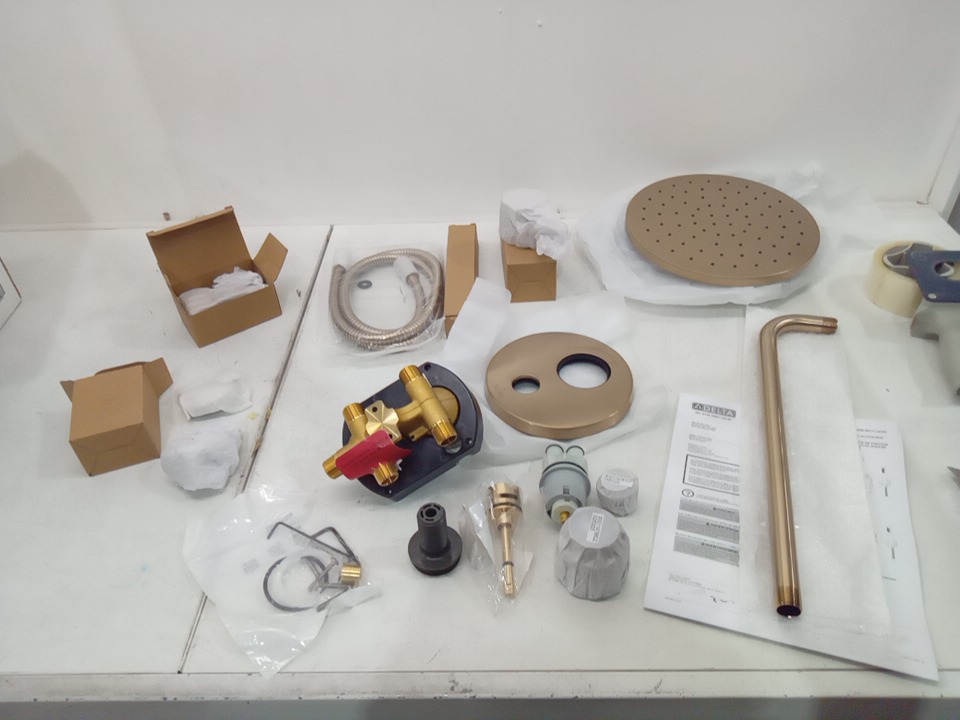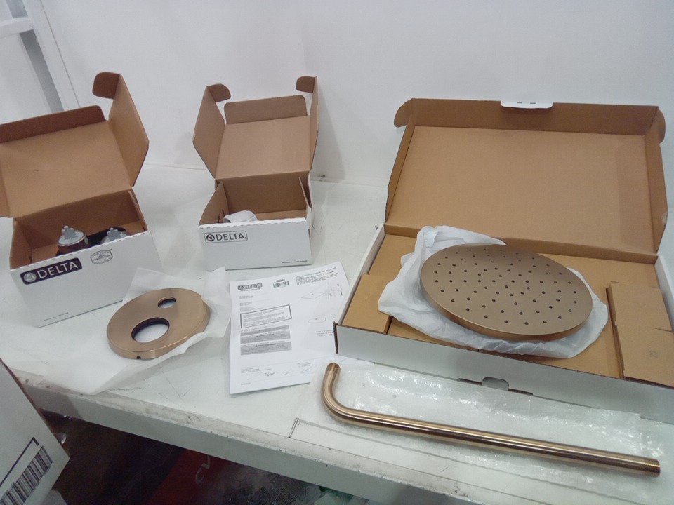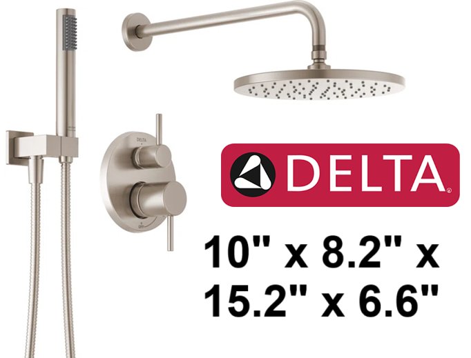 delta modern round shower system with rain shower head and handheld sprayer - 10"x8.2"x15.2"x6.6"- brushed nickel - (model: 116683)
